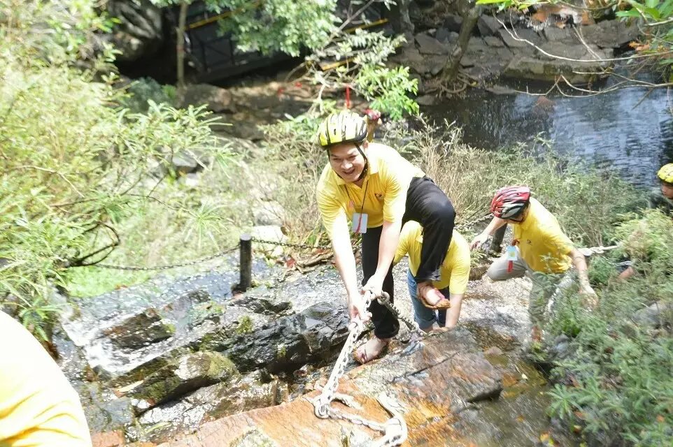 踏瀑戲水”拓展活動(dòng)設(shè)在呀諾達(dá)雨林縱深1.2公里、落差200米的夢(mèng)幻谷中,急流、怪石、瀑布、巨樹等構(gòu)成了一個(gè)令人熱血沸騰、幾欲征服的神秘地帶。穿上草鞋,戴著頭盔您就可以出發(fā)了。溯溪而上,穿越急流險(xiǎn)灘、深潭飛瀑,在與水石的親密接觸中,體驗(yàn)飛瀑戲水的刺激和樂趣,沿途還可欣賞夢(mèng)幻谷美景。為了保證活動(dòng)的安全和可參與性、可玩性,景區(qū)將特別配備專業(yè)教練及防護(hù)裝備。古人云:近山者智,近水者仁。集山、水于一體的踏瀑戲水活動(dòng),能夠體味多少仁與智的深遠(yuǎn)內(nèi)涵!