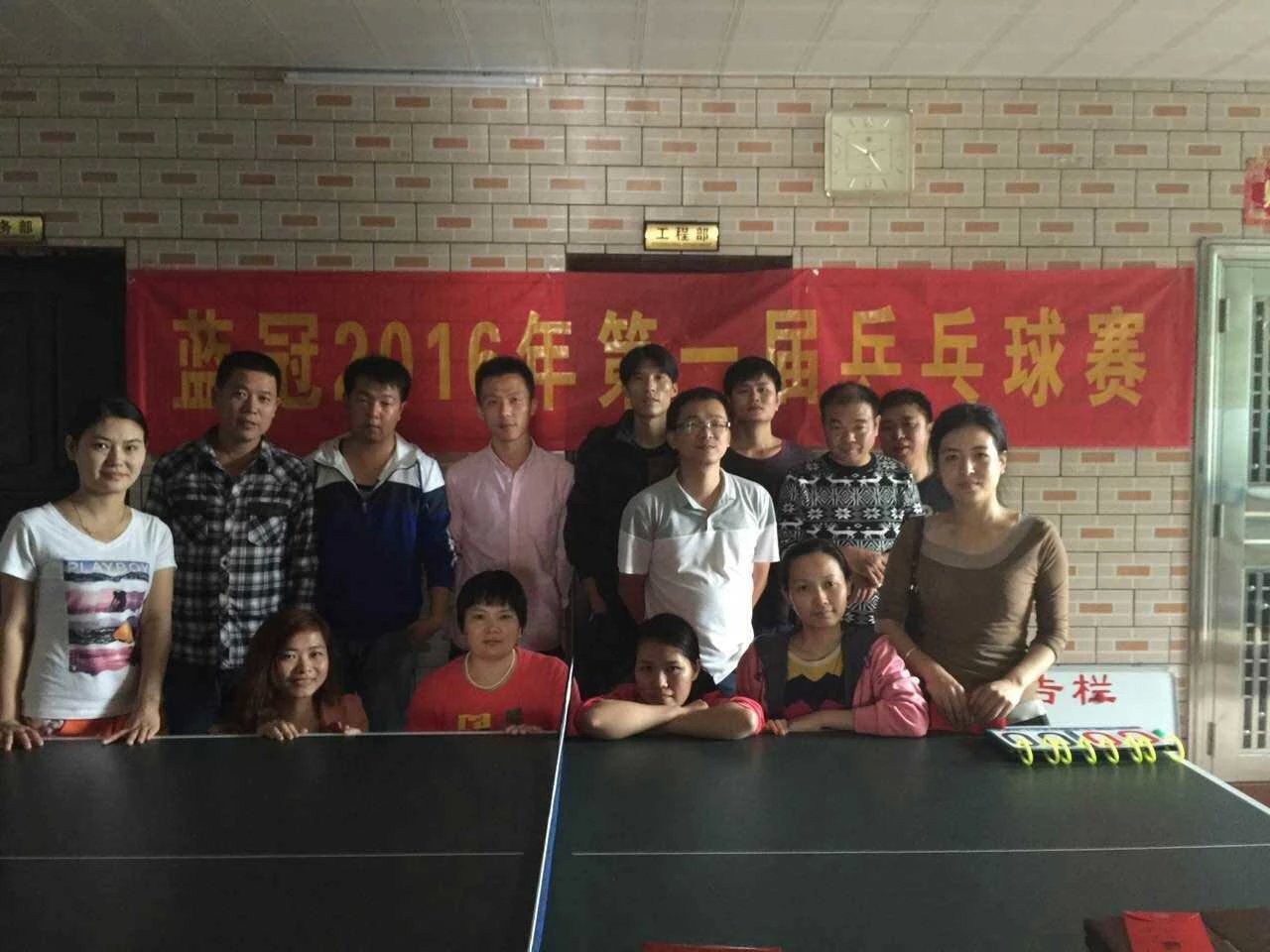 迎新辭舊,藍(lán)冠第一屆乒乓球賽2016年1月15日-17日在藍(lán)冠公司隆重舉行,經(jīng)過(guò)幾輪精彩激烈的對(duì)戰(zhàn),陳家軍、鄧琳、苗瓊分別獲得單打、雙打各項(xiàng)冠軍。