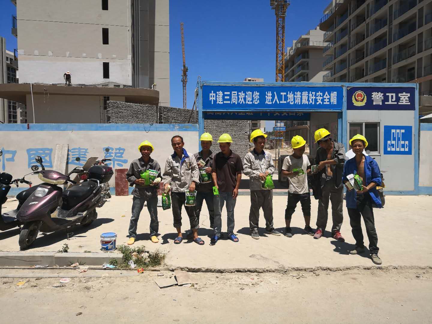 六月炎熱夏日,藍(lán)冠總經(jīng)理霍海東慰問(wèn)三亞紅塘灣項(xiàng)目、海口美麗沙項(xiàng)目的一線施工人員,并給予每一位施工人員發(fā)放了降溫降暑禮品。