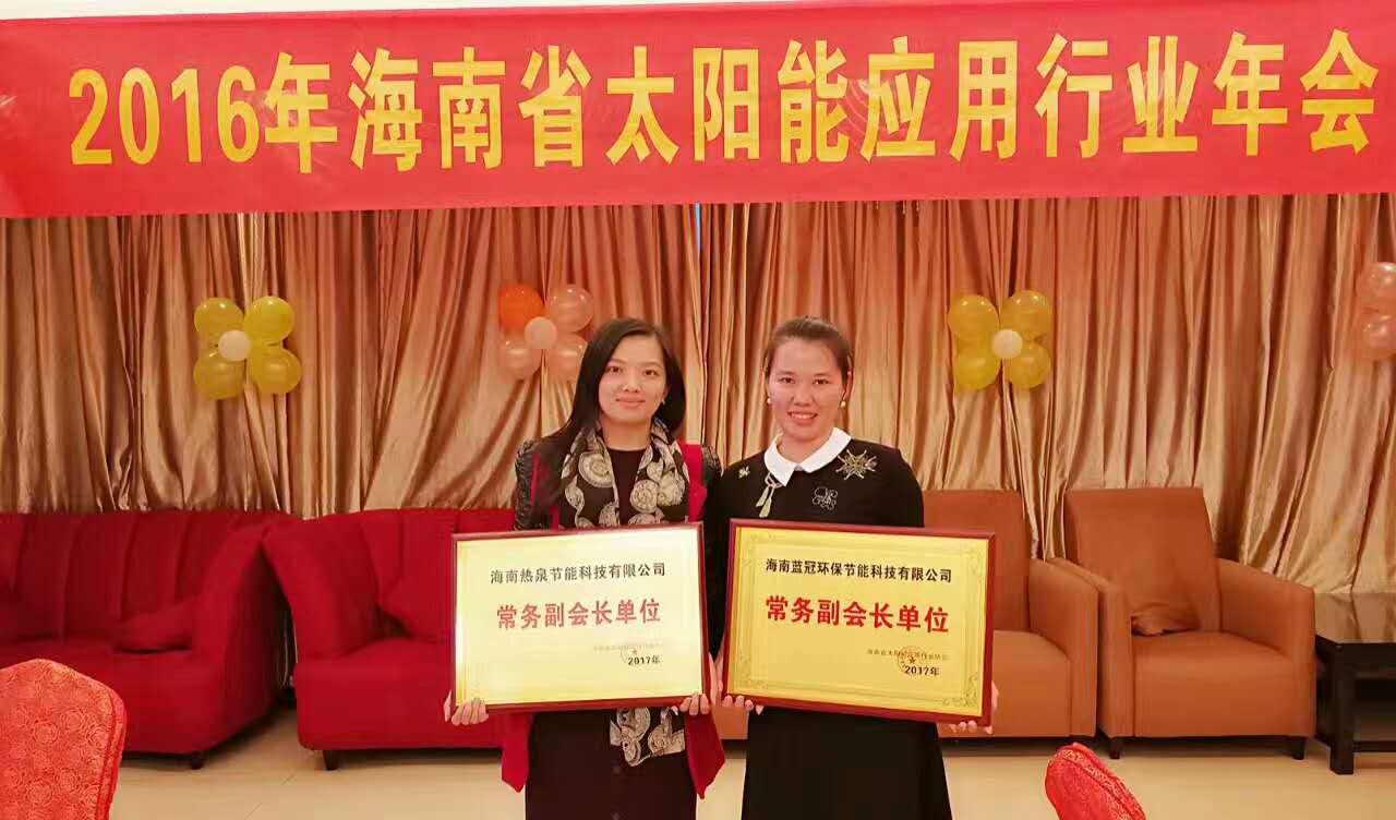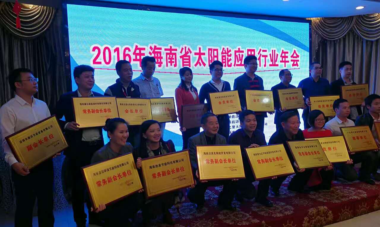 2016年海南省太陽能協(xié)會(huì)太陽能應(yīng)用行業(yè)年會(huì)于2017年1月13日在??诮疸y島大酒店舉行!我司繼續(xù)當(dāng)選協(xié)會(huì):常務(wù)福會(huì)長單位!借此時(shí)機(jī):海南藍(lán)冠祝大家新的一天,身體健康、闔家幸福!