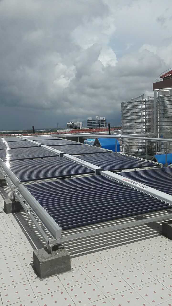 中興通訊有限公司人才公寓位于海南省三亞市崖州區(qū)創(chuàng)意產(chǎn)業(yè)園內(nèi),根據(jù)客戶要求,三棟小高層總施工了4套太陽(yáng)能熱水系統(tǒng),系統(tǒng)采用太陽(yáng)能高效真空管太陽(yáng)能集熱器,美的直熱循環(huán)式空氣源熱水,ABB控制系統(tǒng),薄壁不銹鋼管等 國(guó)內(nèi)知名品牌設(shè)備,藍(lán)冠高要求的精致施工,在太陽(yáng)底下完美的顯現(xiàn)了太陽(yáng)能的銀光刺眼。