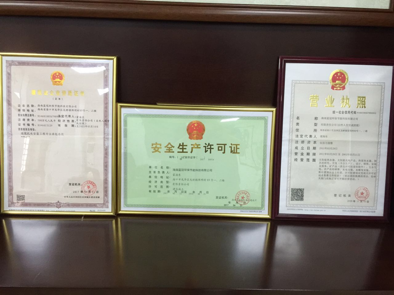 熱烈祝賀~海南藍冠環(huán)保節(jié)能科技有限公司取得機電工程專業(yè)承包三級資質(zhì)和安全生產(chǎn)許可證,